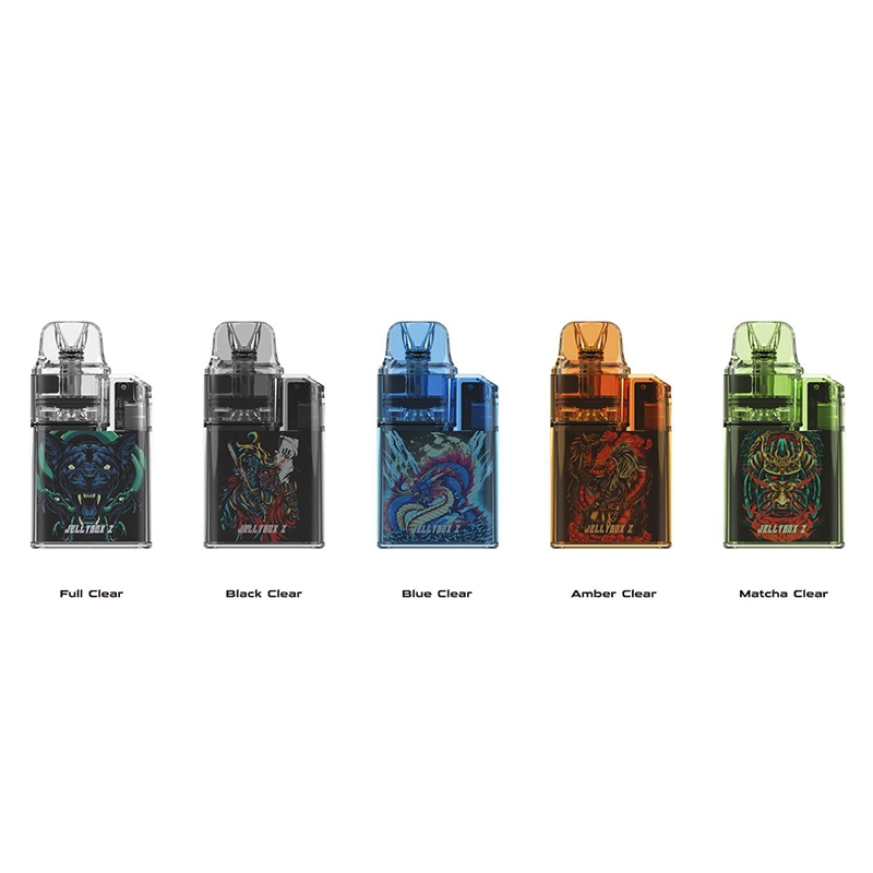 Specificaties: Product: Jellybox Z Vermogen: 10-15w Input: 3.2-4.2V Spoelweerstand: 1.0-3 ohm Oplaadspecificatie: 5V/0.6A Materiaal: PCTG+PC Pod capaciteit: 2.0ml Grootte: 73*39*15.5mm Gewicht : 41g Batterij: 850mAh Efficiëntie: 95% Paklijst: 1*Jellybox Z 1*Cartridge 1*Type-C oplaadkabel 1*Certificaatkaart 1*Garantiekaart 1*Gebruikershandleiding